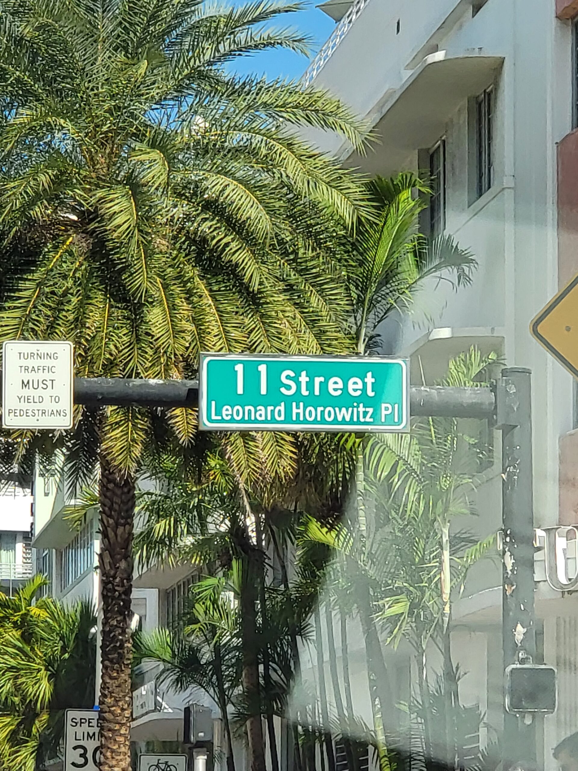 Whenever I’m in South Florida I make a pilgrimage to 11th street and Ocean Drive and gaze at the street sign that says: LEONARD HOROWITZ PLACE. Close by is another one named after Barbara Capitman.